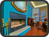* Καθιστικό με τηλεόραση, τζάκι και βιβλιοθήκη