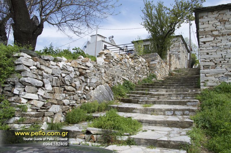 Τρεις διαδοχικές πλακόστρωτες πλατείες, κτισμένες σύμφωνα με τη χαρακτηριστική Πηλιορείτικη αρχιτεκτονική, δεσπόζουν στο κέντρο του χωριού :